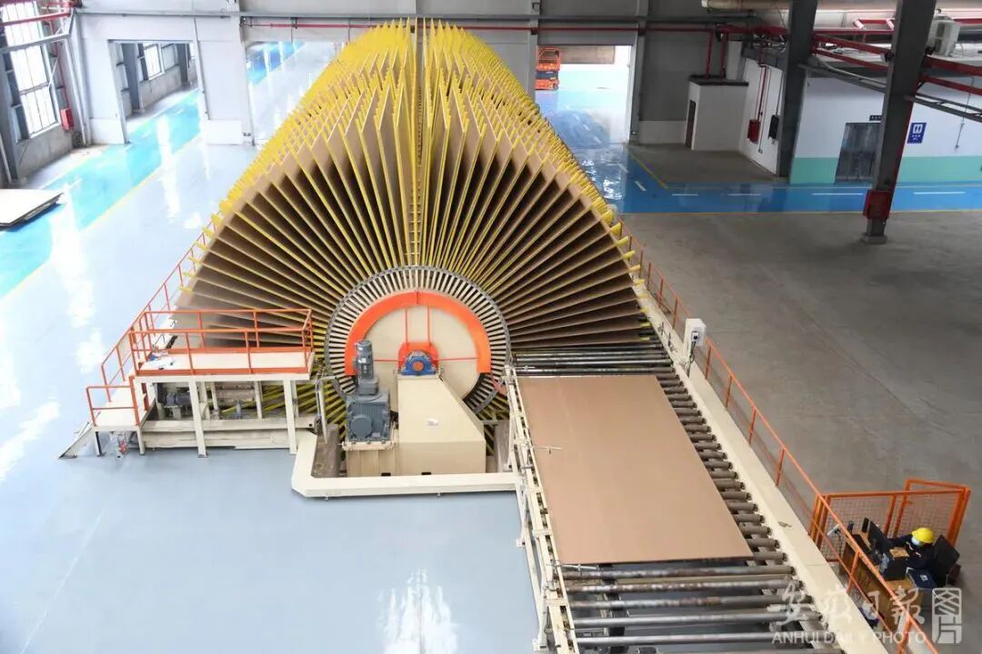 ? 5月9日,樅陽縣橫埠鎮安徽萬華秸稈綜合利用生態產業園,員工在智能化生產線上生產無甲醛秸稈板材。方好/攝