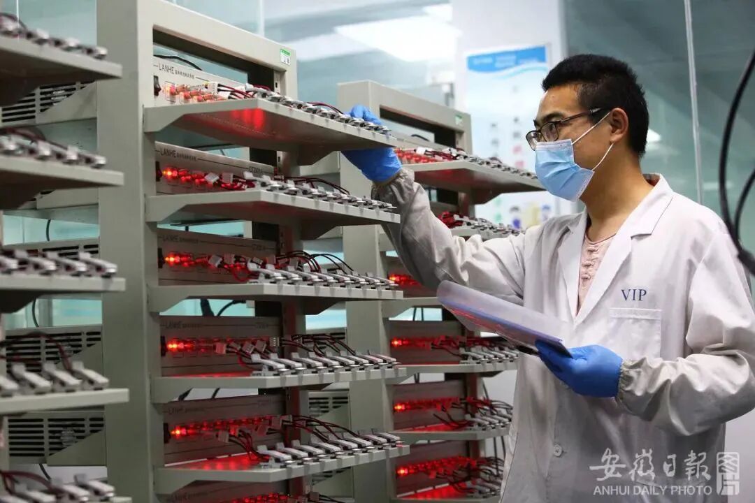 ? 5月12日,當涂經開區安徽科達新材料有限公司職工在檢測生產的鋰電池負極材料性能。王文生/攝