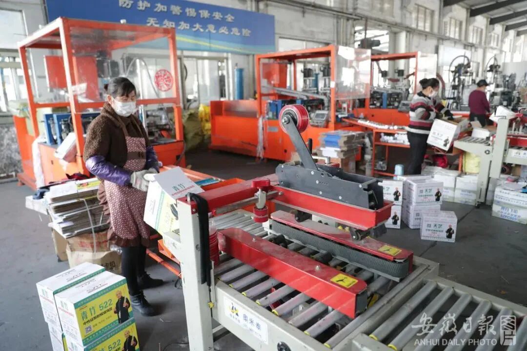 ? 安徽神舟飛船膠業有限公司工人在生產線上操作。黃連廣/攝